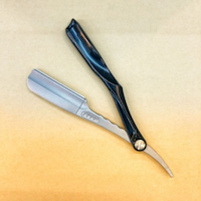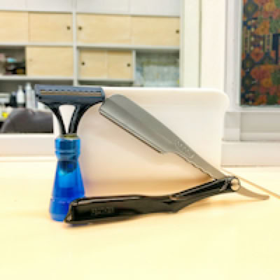 お顔剃り、襟剃りに使うカミソリは、お一人づつ新しい替え刃、消毒したホルダーを使用しております。